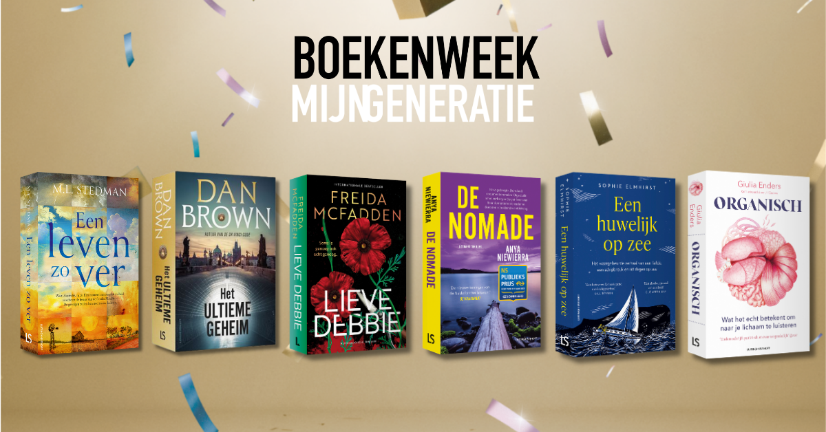 Maak kans op dit fantastische Boekenweek-pakket. Zes boeken die niet mogen ontbreken op jouw leeslijstje tijdens de Boekenweek. Denk aan het nieuwe boek van Dan Brown, of De nomade van Anya Niewierra. De prachtige roman Een leven zo ver mag natuurlijk ook niet ontbreken. Laat hieronder je gegevens achter, schrijf je in voor onze nieuwsbrief en maak kans op deze te gekke boekenstapel.